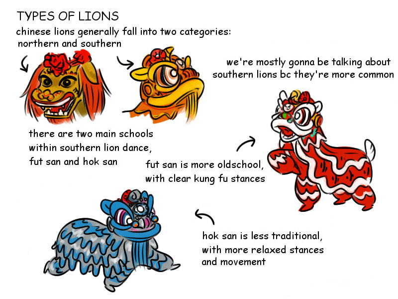The two main types of lion dance in China are the Northern and Southern Lions. The majority of lions in Australian Lunar New Year celebrations are the Southern Lions and this is what we will focus on today.