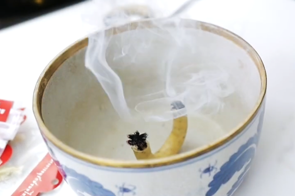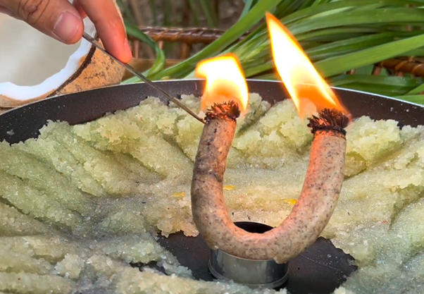 Lighting up a candle to infuse dessert fillings (Image source | Thantong)