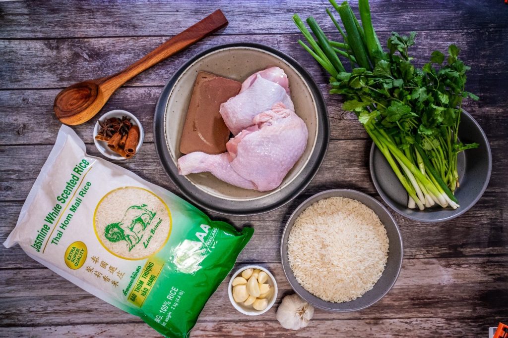 This dish is well-known in Phuket, Thailand, but there are many versions across Thailand. One popular and easy version is dry rice porridge with pork mince. It’s full of flavours that kids and adults love. You can use different meats like seafood, roasted pork, or chicken. Today, I’m sharing my family’s recipe with braised chicken drumsticks (or wings if you prefer).